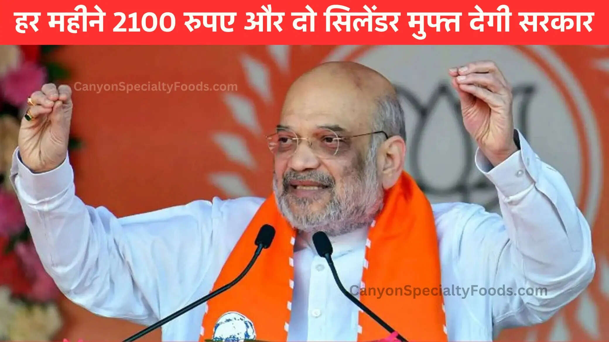 हर महीने 2100 रुपए और दो सिलेंडर मुफ्त देगी सरकार, अमित शाह ने किया बड़ा ऐलान Free Gas Cylinder